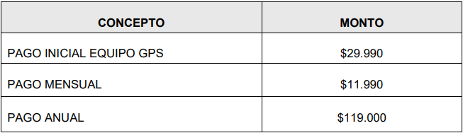 El pago inicial otorga al Cliente la propiedad del equipo GPS, el cual quedará en su poder, independiente si continúa o no con el servicio después de los tres meses gratuitos.